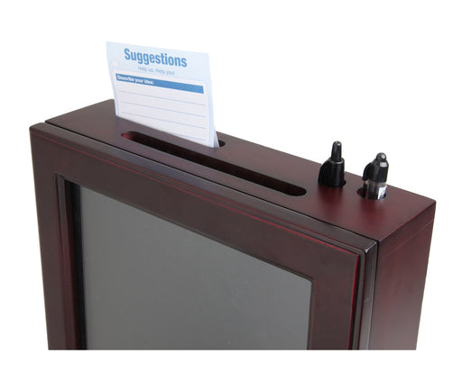 - Holds pens and suggestion cards