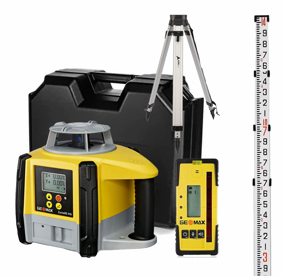 GeoMax Zone60 HG Dual Grade Laser w/ZRP105 Pro Laser Receiver, Tripod & 16' Grade Rod Tenths