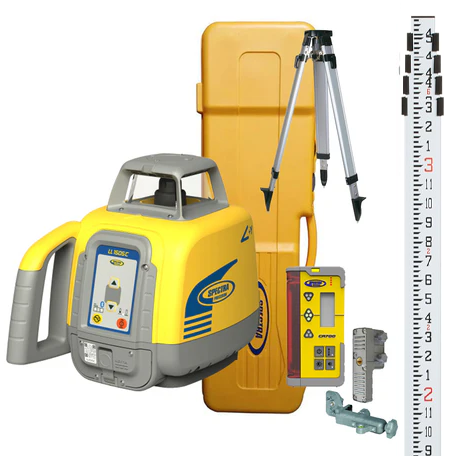 Excavator Machine Control Package - Spectra LL1505C Rotary Laser, LR30 Machine Control Receiver, Magnetic Mount, and Tripod