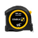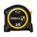 The Stabila BM 300 Pocket Tape is available in 16 ft, 26 ft, and 33 ft lengths with cm/inch or imperial scales. The shatterproof PC/ABS housing, reinforced with a soft grip shell, protects the tape from jobsite impacts, while the strong return spring and curved brake switch allow smooth blade retraction and secure control.