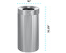 The Alpine 27 Gallon Stainless Steel Indoor Trash Can weighs 11.8 lbs and measures 32”H x 16”W x 16”D. No assembly is required. It includes a 1-year limited warranty.