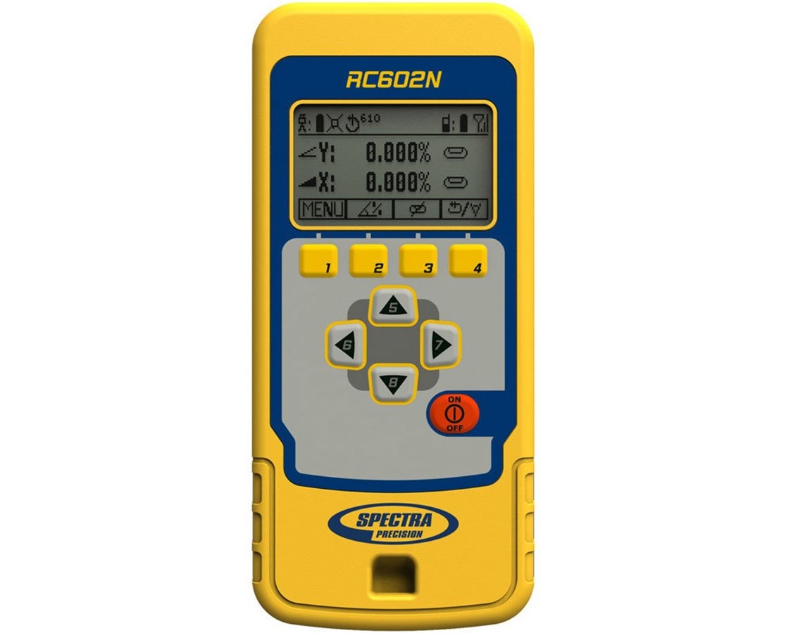 The Spectra RC602N Remote Control enhances the laser's capabilities which are important when performing surveying jobs, such as leveling, trenching, remote grade checking, and wireless monitoring. It has a range of up 490 feet and is compatible with the Spectra GL612N and GL622N Grade Lasers. This remote control enables readings and grade changes anywhere on the job site, even from the cab of the machine.