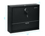 The drop slot measures 10" wide x 5/16" deep and the box measures 12"W x 3"D x 10"H. This sturdy unit can be mounted securely to any wall or door. It also includes a durable lock with two keys.