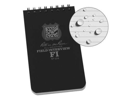 • Water-resistant spiral field notebook with page numbers for easy reference