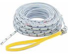 The clear coat on the Keson 100-foot Surveyor's Rope will allow it to be used in all weather conditions without worrying about it rusting or rotting if it gets wet like other tapes or ropes. With a tensile strength of 200 pounds, it will hold up well.