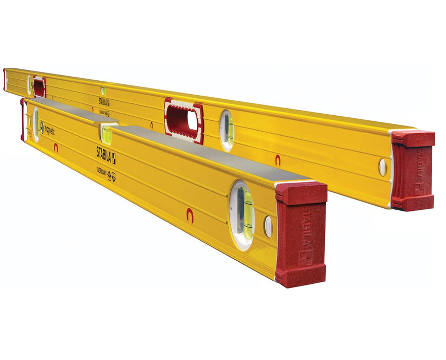 The Stabila 196M Magnetic Level Jamber Set (2-Pack) comes with anti-slip, shock-absorbing red rubber end caps to eliminate slipping during use while protecting it against impact in case of falling or dropping. The 78-inch level also offers hand holes for comfortable grip. With a large metal hang hole, it is convenient to store off of the floor. Its electrostatic enamel finish guarantees long-lasting durability and easy clean up.