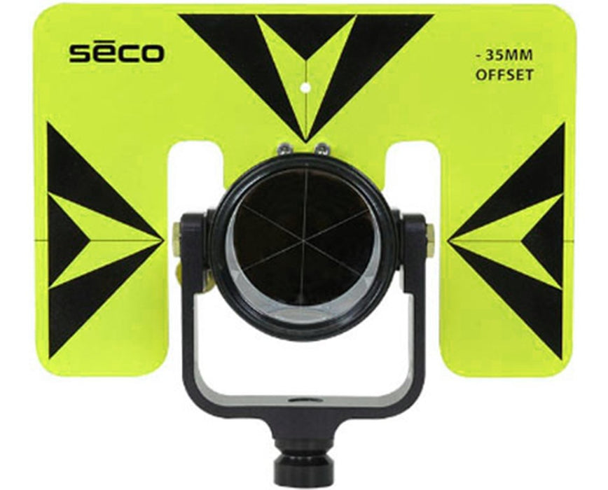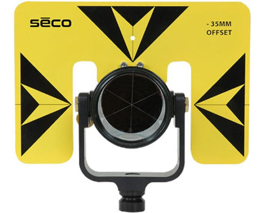 The Seco -35 mm Premier Prism Assembly offers surveying professionals a silver-coated prism with a 62-millimeter diameter, -35-millimeter offset, and less than 5 arc second accuracy. Secured in a heavy-duty plastic canister, this prism is also water-resistant.