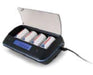 The LaserLine 4 NiMH Rechargeable Batteries with Charging Station includes a charging platform which features a built-in USB port for convenience. It also comes with discharge function and automatic charging current selection.