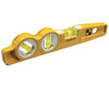 This three-vial torpedo level by Stabila features an ergonomic T profile that ensures comfortable grip while working. Its die-cast aluminum frame is tough and sturdy to withstand heavy-duty use. It offers long-term precision up to ±1/32 inch per 72 inches and ±3/64 inch per 72 inches with its acrylic glass vials. With its extra-strong rare-earth magnet system and a precision-milled V-groove measuring surface, it provides optimum hold to metal objects for hands-free positioning, measuring, and aligning.
