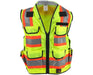 This SECO safety vest was developed in conjunction with surveyors from the California DOT and meets ANSI/ISEA Class 2 requirements. This Class 2 reflective vest features bright fluorescent material with 4" (10.16 cm) wide contrasting reflective material around 2" (5.08 cm) wide silver stripes made of 3M Scotchlite reflective tape.