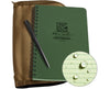 The Rite in the Rain Side Spiral Kit is a complete field notebook set that contains: The All-Weather Side Spiral Notebook, All-Weather Metal Pen, and water-resistant notebook case. Each kit component is water-resistant on its own, and used together, any field worker will have the confidence to work and be assured that the gathered notes will be intact after. The notebook provided in the kit is the All-Weather Side Spiral Notebook. This notebook can withstand sweat, rain, grease, oil, and other harsh elements outdoors. For the pen, the All-Weather Metal Pen writes through water, grease, mud, oil, and more. Not to be outdone, the kit's notebook case is also water-resistant and will provide adequate protection for the notebook and the information it carries.