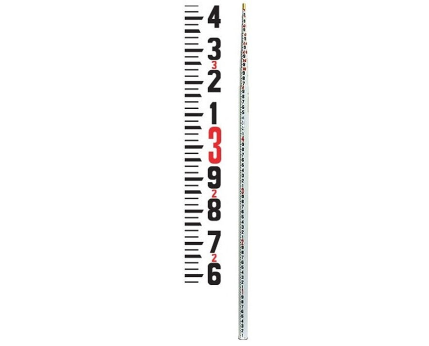This Seco collapsible leveling rod is outlined with scale graduations in feet/10ths/100ths that are easy to read. Comes with a positive locking mechanism of spring-loaded buttons, this leveling rod securely locks to the desired height. In addition, it is equipped with a 5/8 x 11 thread and includes a carrying case.