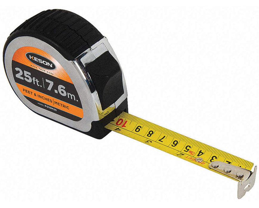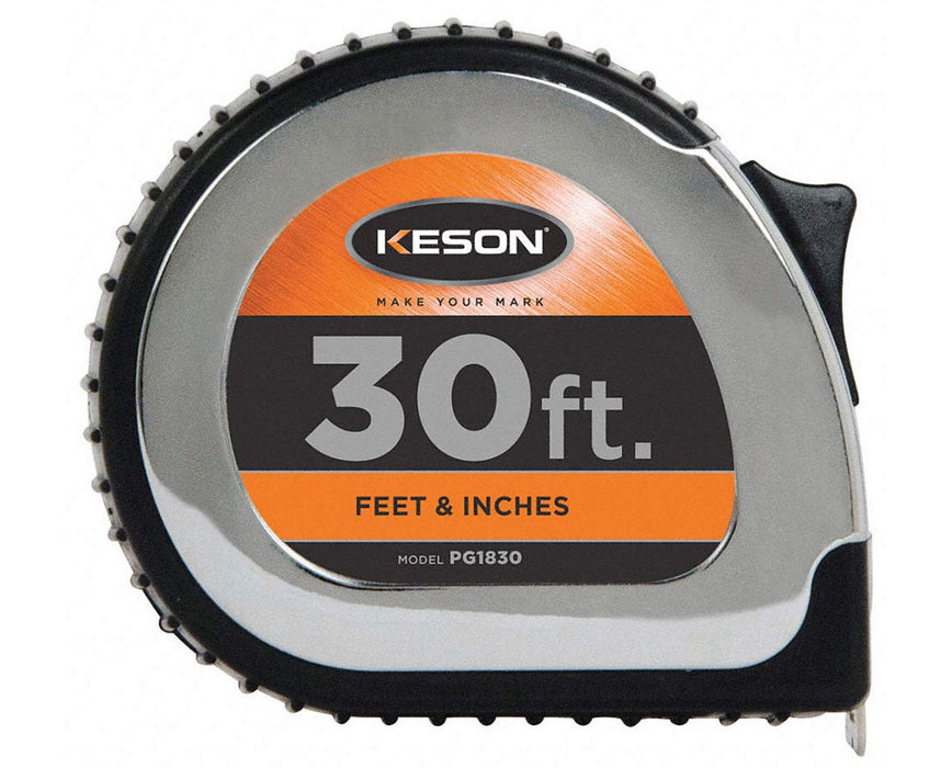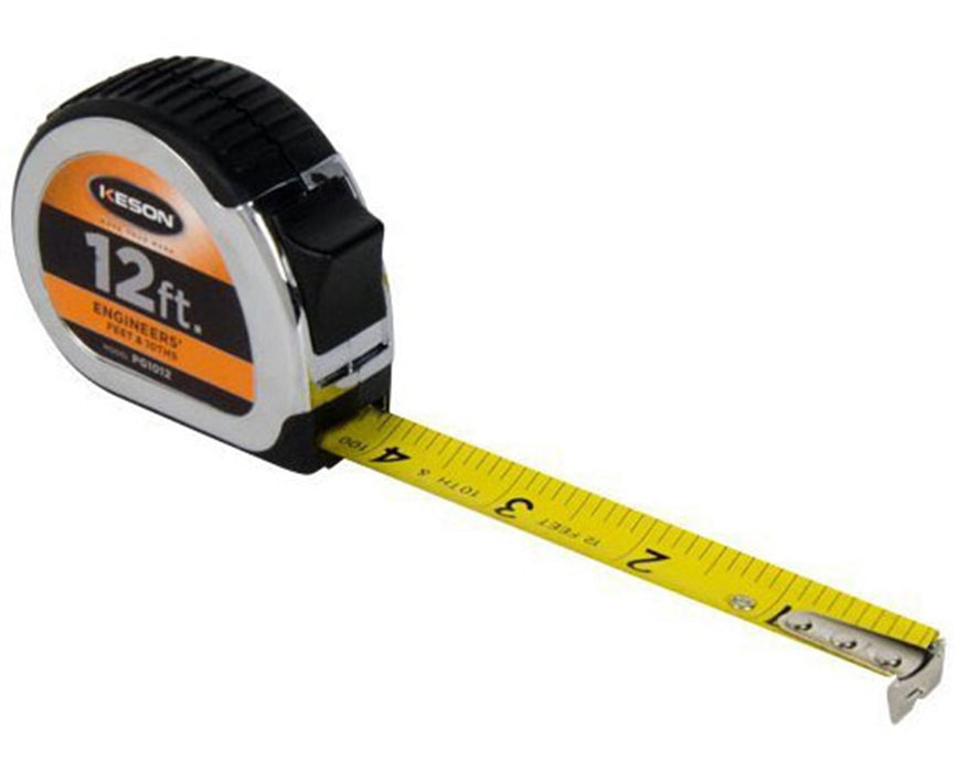The Keson Feet Chrome Short Tape is one of Keson's most popular model of short tape measures. It is made with chrome-coated, rubber-grip ABS case that provide a sure hold even in a gloved hand. Also, the blade is nylon-coated which is built for longer life and is abrasion resistant.