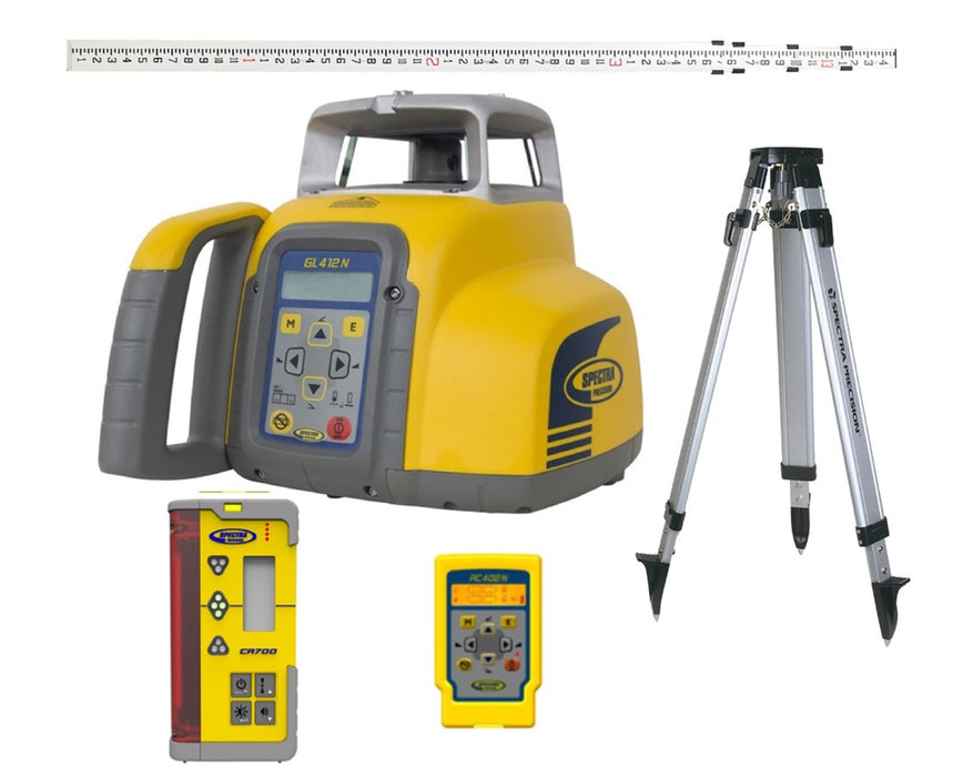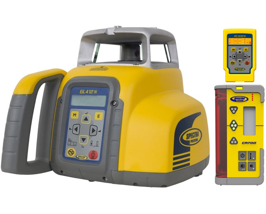 Simplifies level, grade, and vertical alignment setups, the Spectra Precision GL412N Single Grade Laser delivers reliable and accurate performance in various general construction applications. With a working range of up to 2,600 feet, it has a grade capability of 10 to +15 percent on a single axis. The GL412N is also self-leveling horizontally and vertically within 5 degrees and has an accuracy of 1/16 inch per 100 feet. For anchor bolt and form alignment, itself-plumbs in the vertical position and can be mounted on a 5/8-11 tripod thread vertically or horizontally.