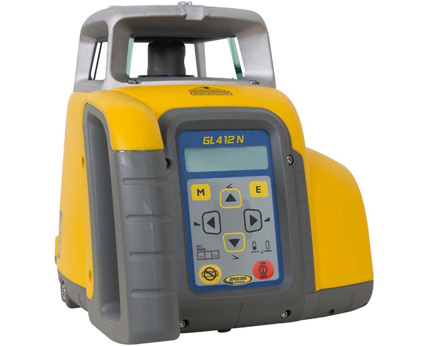 The Spectra GL412N has an out-of-level alert that shuts off the grade laser if it is knocked out of place to avoid erroneous readings. It also has a selection of sensitivity for accurate results even in high winds or on high vibration job sites.