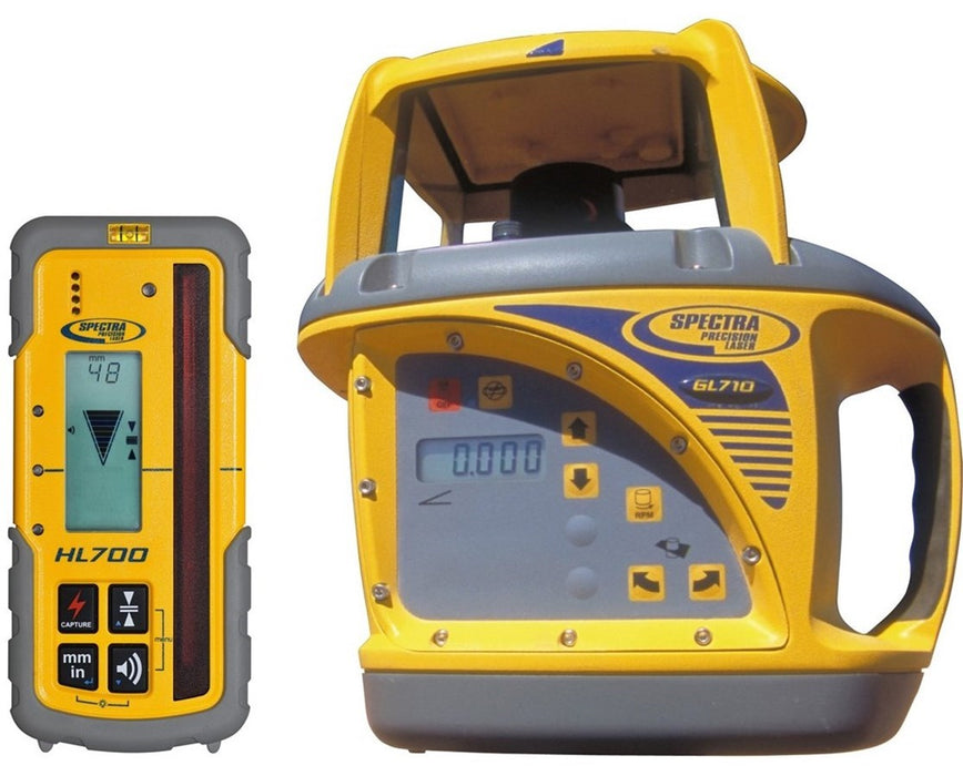 The Spectra Precision GL710 Grade Laser comes in options that differ in their configuration. You may choose the standard package, or the package with an included HL700 Laser Receiver and a C70 Adapter Clamp. Kindly choose your preference in the options menu above.
