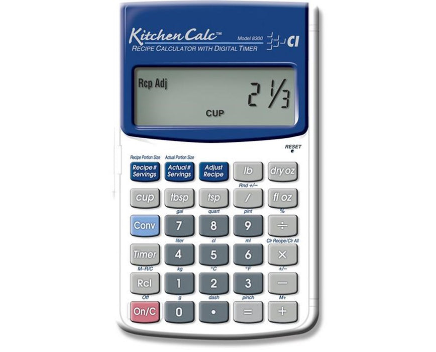 Stop "guesstimating" ingredient quantities with the Calculated Industries KitchenCalc Calculator. This handheld recipe scaling calculator allows professional chefs and cooking moms to increase and decrease recipe ingredients in a kitchen-based format, where the numbers are based according to cups, tbls. and tsps. It accurately scales recipes, simplifies recipe costing, and scales for number of servings, portions, or both.