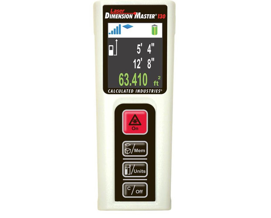 The Calculated Industries Laser Dimension Master 130 is an electronic tape measure that uses laser beams to determine distance, areas, and volumes. An alternative to traditional tape measures, it measures up to 130 feet with 1/8" accuracy or better over its entire range. It is the ideal tool for estate agents and brokers, appraisers, architects, contractors and builders, electricians, carpenters, plumbers and interior designers, or anyone who needs quick accurate measurements.
