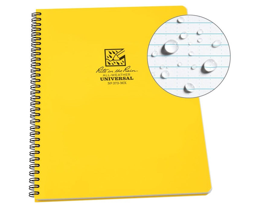 The Rite in the Rain Maxi All-Weather Side Spiral Notebook is a large (8.5" x 11") field notebook perfect for projects that require more notes. The Maxi All-Weather notebook can resist water, sweat, mud, grease, and snow. Its pages avoid the writing from getting rubbed off or washed away. The notebook is protected by Polydura cover, and its side spirals are made with Wire-O.