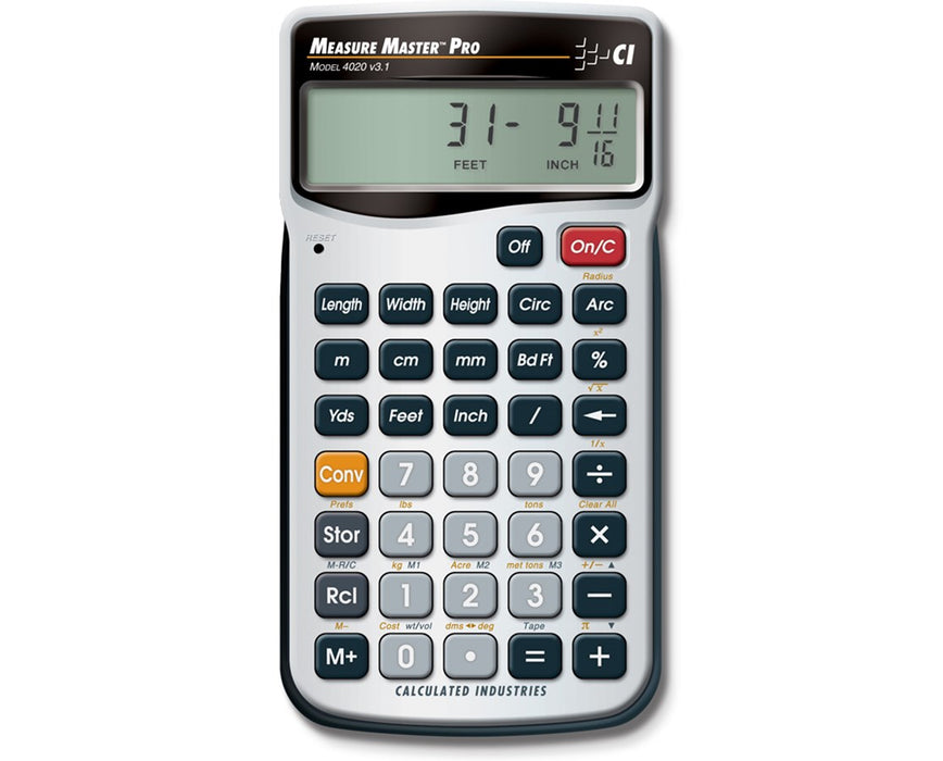 Designed for quick and accurate measurements, the Calculated Industries Measure Master Pro Calculator features multiple U.S. and metric units and conversions, including yards, feet, inches, meters, centimeters and millimeters. It does precise measurements down to 1/64 inches, working in and between fractions and decimals, cubic measurements, and cubic volumes. Excellent for architects, tradesperson, designers, and anyone in need of fast calculations, this measuring device has shortcut keys for commonly used functions for area, volume, square up diagonal, and more.