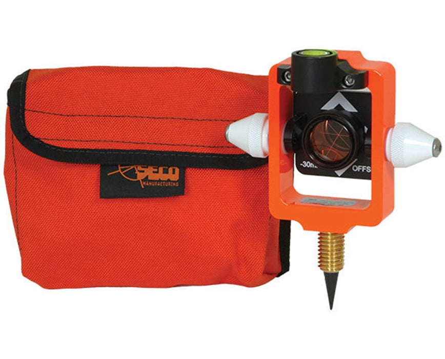 In front and on top of this Seco mini prism you will also find a convenient and resourceful adjustable circular level vial with 40-minute sensitivity. Top and bottom 5/8 x 11-in. threads maximize your mounting options and the included orange, nylon carrying case maximizes your storage and transport capabilities.