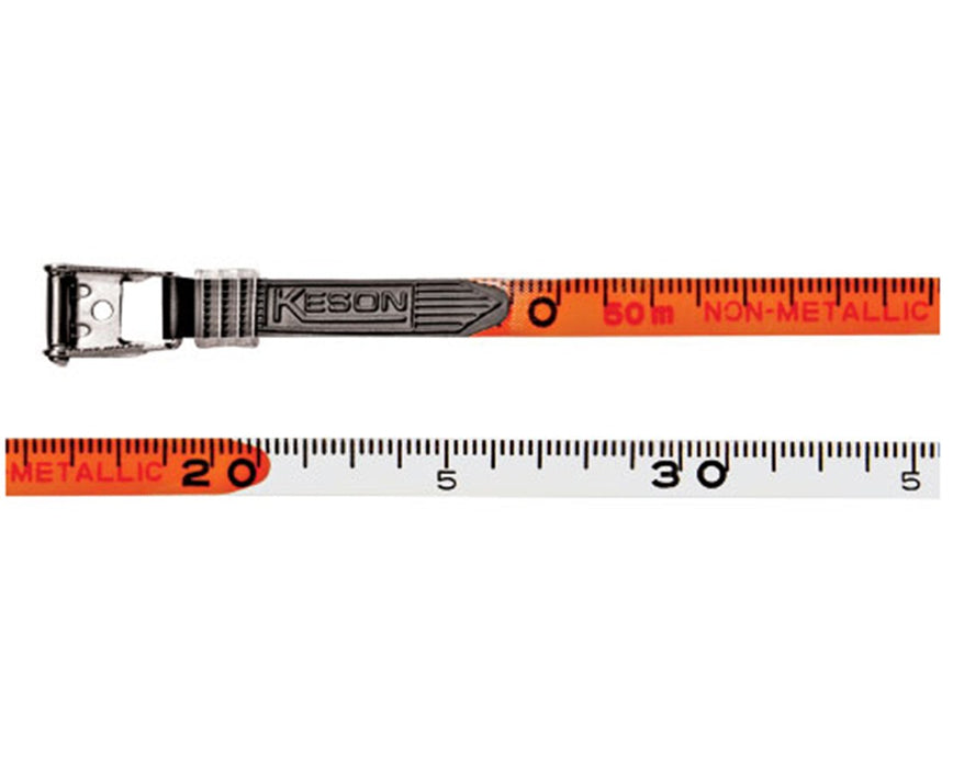These Keson blades contain 40,000 fiberglass strands for greater tensile strength and superior accuracy when tension is applied. Two coats of PVC protect the tapes from breaking, and a blade shield adds strength to the attachment (the point at which most fiberglass tapes break). These tapes have proven dielectric strength of 200,000 V/M to assure your safety from electrical hazards.