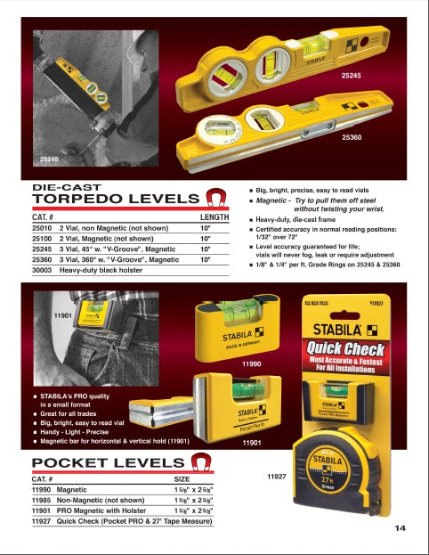 The Stabila PRO Magnetic Pocket Level is a handy measuring tool that every construction professional should have. With its compact size of three inches, it is perfect for positioning small interior and exterior trim pieces such as wall lights, thermostats, emergency signs, alarm triggers, and many others. It is small, lightweight, and even includes a belt holster for easy carrying and accessibility.