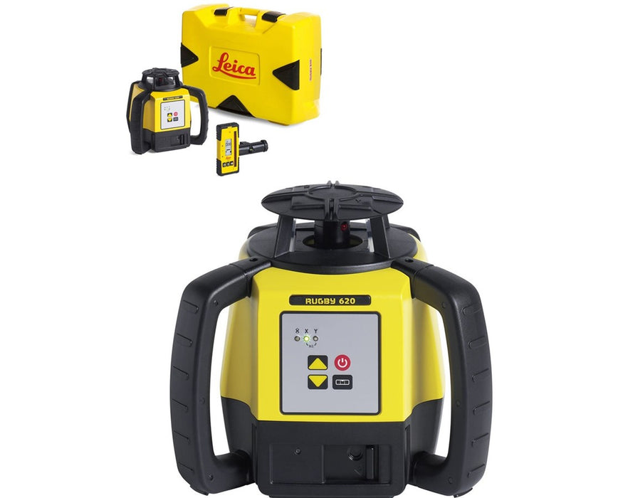 The Leica Rugby 620 Rotary Laser Level has all the great features of the Rugby 610 plus the addition of a manual slope option, an increased accuracy of ±1/16-inch at 100 feet, and improved range of up to 2,600 feet. It is also easy to use with its one-button self-leveling operation, grade entry arrows, and LED indicators for all general construction application.
