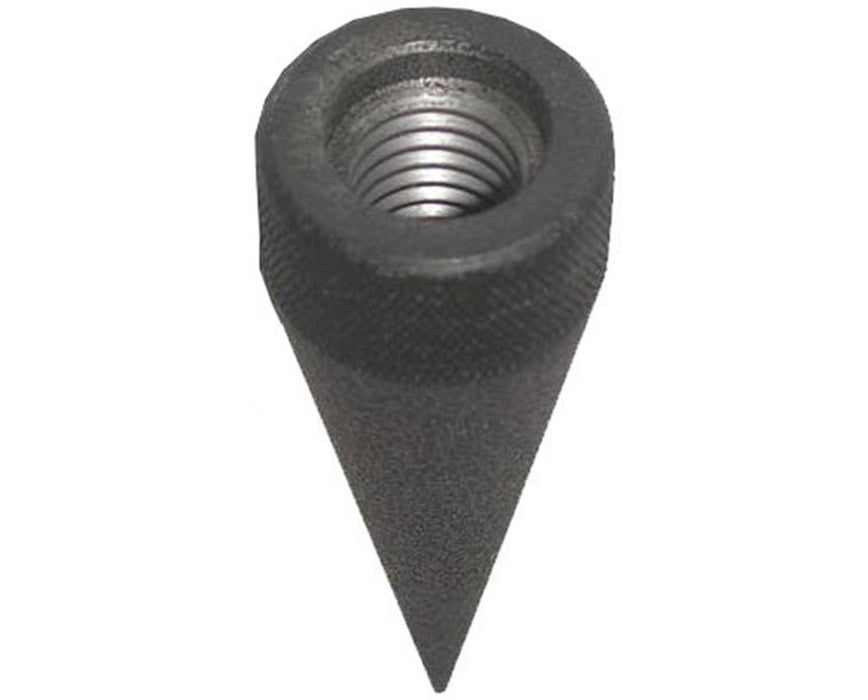 The Prism Pole Point for Surveying Poles is a 3.37-inch surveying accessory that is compatible with prism and range poles.This steel body replacement point fits prism poles with 5/8 x 11 male threads on the bottom of the pole.