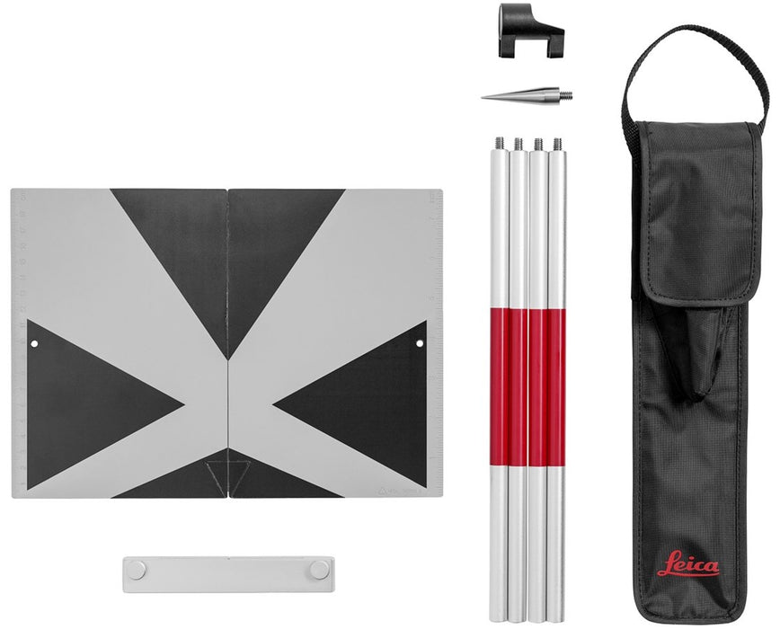 The TPD100 Target Mount Kit includes the GLS 115 mini pole that gives prism heights for up to four feet and a GLI 115 bubble that attaches to the mini pole to indicate leveling. It also includes the GVP 608 soft bag that safely transports and stores the target and its other accessories.
