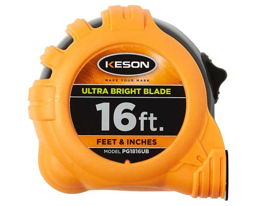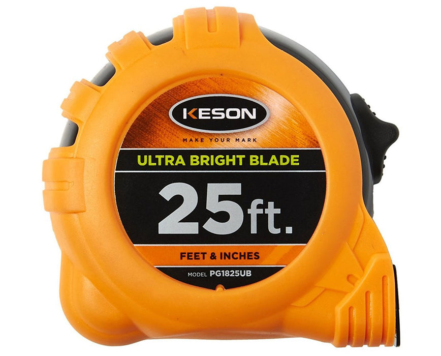 The Keson Ultra Bright Short Tape is a convenient measuring tape that easy to read even in low light environments. It is great for in-shadow measurements like measuring inside cabinets and in corners. It features an ultra-bright nylon coated blade that is 1-inch in width.