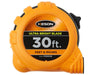 This Keson short tape is enclosed in a high-impact black ABS case and a high-visibility rubber grip. Also, it features an increased number size for easy reading. The vertical scale on the reverse makes it easy to measure vertical surfaces more easily. On top of this, it consists of a slide lock and an impact absorbing bumper that helps protect the end hook on the tape return.