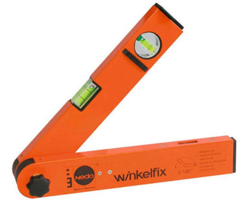 The Nedo Winkelfix Angle Finder is a tool that provides easy, quick, and precise measurement and transfer of angles. It is a reliable measuring tool that features an analog display in degrees and two spirit levels for horizontal and vertical alignment. It has an accuracy of ± 0.25 degrees, a one-degree resolution, and can measure angles of up to 180 degrees. This angle finder comes in different types which are a shorty, mini and maxi and each is of different sizes. The maxi type includes compass points. This measuring tool also includes a carrying bag for storage and transport.